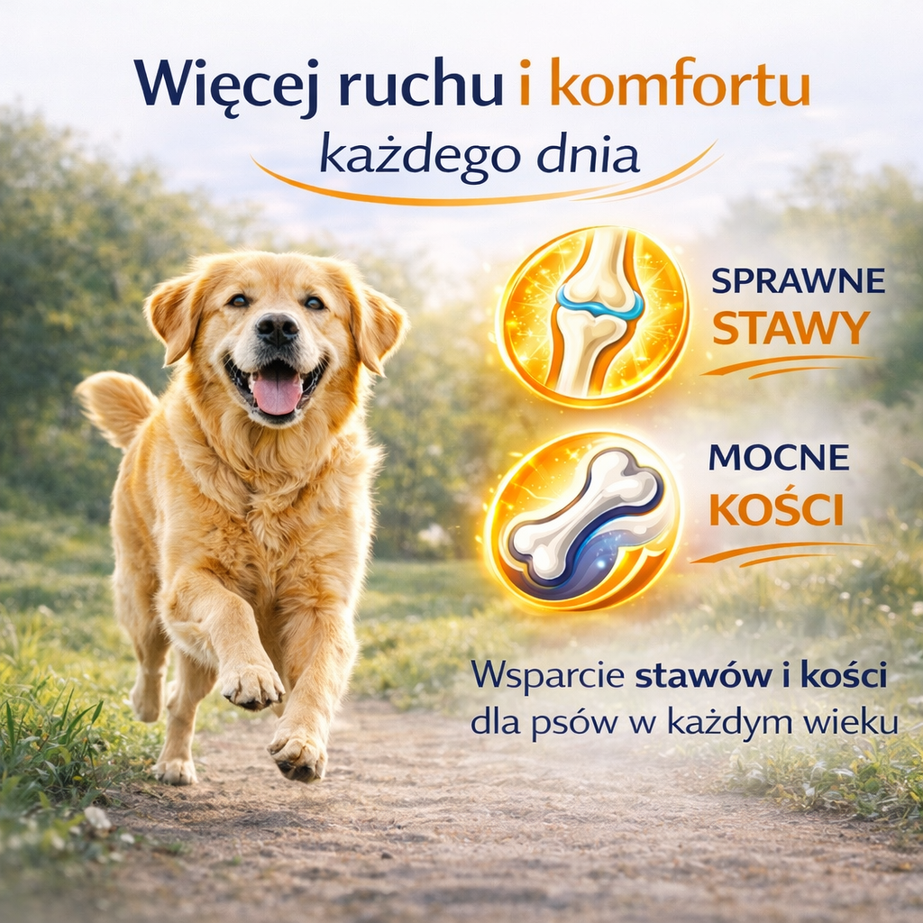 Stałe wsparcie stawów i utrzymanie dobrej kondycji, aby Twój pies mógł cieszyć się ruchem każdego dnia.